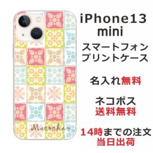 - iPhone13 mini アイフォン13ミニ らふら 名入れ スマホケース ハワイアン ハワイアン キルト