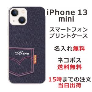 - iPhone13 mini アイフォン13ミニ らふら 名入れ スマホケース デニムプリントケース