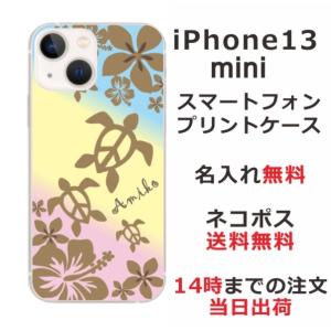 - iPhone13 mini アイフォン13ミニ らふら 名入れ スマホケース ハワイアン グラデーションホヌ