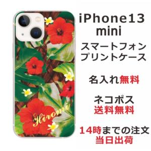 - iPhone13 mini アイフォン13ミニ らふら 名入れ スマホケース ハワイアン ハイビスカス