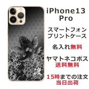 - iPhone13 Pro アイフォン13プロ らふら 名入れ スマホケース 和柄 昇り鯉黒