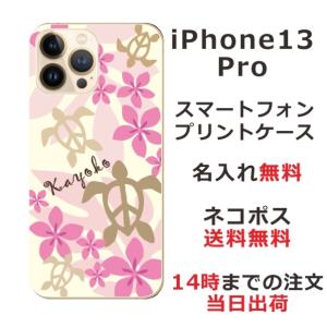 - iPhone13 Pro アイフォン13プロ らふら 名入れ スマホケース ハワイアン ピンク ホヌ