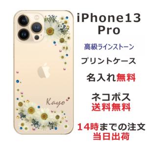 - iPhone13 Pro アイフォン13プロ らふら 名入れ スマホケース ラインストーン スマホカバー 押し花風 春花