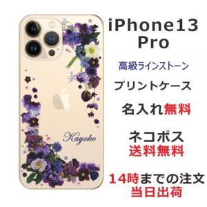 - iPhone13 Pro アイフォン13プロ らふら 名入れ スマホケース ラインストーン スマホカバー 押し花風 パープルアレンジ