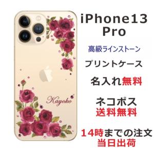 - iPhone13 Pro アイフォン13プロ らふら 名入れ スマホケース ラインストーン スマホカバー 押し花風 ダークピンク ローズ