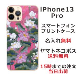 - iPhone13 Pro アイフォン13プロ らふら 名入れ スマホケース 和柄 蓮花ピンク