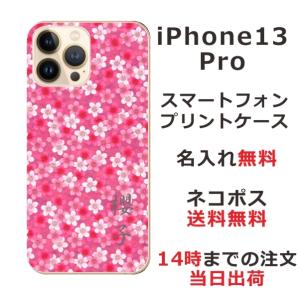 - iPhone13 Pro アイフォン13プロ らふら 名入れ スマホケース 和柄 桜ピンク