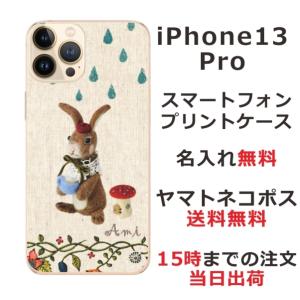 - iPhone13 Pro アイフォン13プロ らふら 名入れ スマホケース 雨降りうさぎ