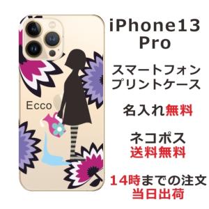 - iPhone13 Pro アイフォン13プロ らふら 名入れ スマホケース モダン花 少女