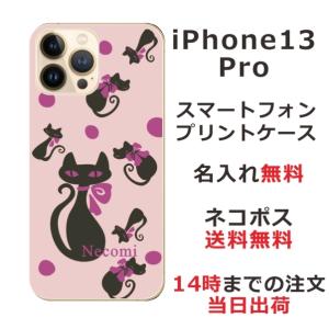 - iPhone13 Pro アイフォン13プロ らふら 名入れ スマホケース 和柄 和黒猫