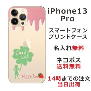 - iPhone13 Pro アイフォン13プロ らふら 名入れ スマホケース クローバー グッドラック