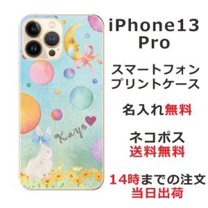 - iPhone13 Pro アイフォン13プロ らふら 名入れ スマホケース お花畑 ウサギ