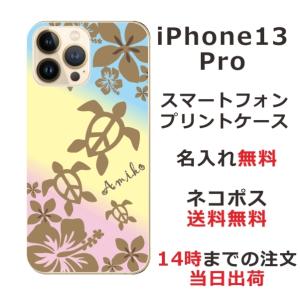 - iPhone13 Pro アイフォン13プロ らふら 名入れ スマホケース ハワイアン グラデーションホヌ