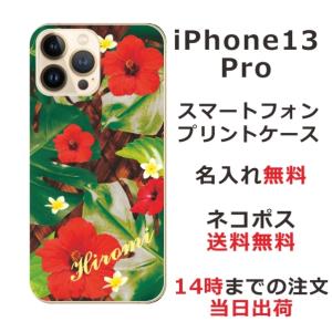 - iPhone13 Pro アイフォン13プロ らふら 名入れ スマホケース ハワイアン ハイビスカス