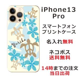 - iPhone13 Pro アイフォン13プロ らふら 名入れ スマホケース ハワイアン ブルー ホヌ