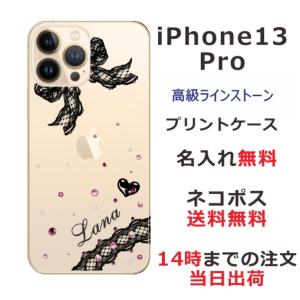 - iPhone13 Pro アイフォン13プロ らふら 名入れ スマホケース ラインストーン レースリボン