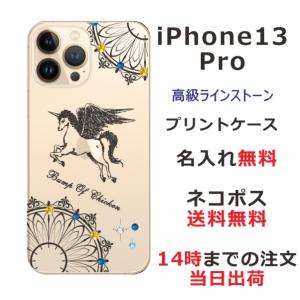 - iPhone13 Pro アイフォン13プロ らふら 名入れ スマホケース ラインストーン ユニコーン
