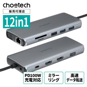 USB ハブ CHOETECH マルチディスプレイ 12in1 HUB-M26 PD 100W 拡張 ミラー 高速データ転送 HDMI VGA USB 2.0 USB-C Micro SD 3.0 12 in 1 4K