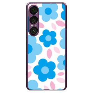 フラワーポップ ホワイト×ブルー (ソフト ケース カバー) SECOND SKIN Xperia 1 VII