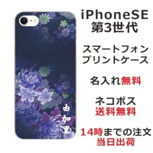 - iPhone SE 第3世代 らふら 名入れ スマホケース 和柄 和花青紫グラデ