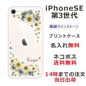 - iPhone SE 第3世代 らふら 名入れ スマホケース ラインストーン スマホカバー 押し花風 フラワリー ホワイト