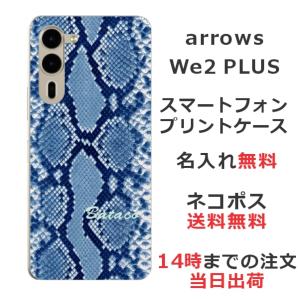 - arrows We2 PLUS F-51E アローズWe2プラス らふら 名入れ スマホケース へび柄 ブルー