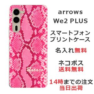 - arrows We2 PLUS F-51E アローズWe2プラス らふら 名入れ スマホケース へび柄 ピンク