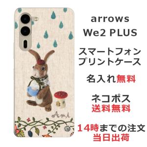 - arrows We2 PLUS F-51E アローズWe2プラス らふら 名入れ スマホケース 雨降りうさぎ