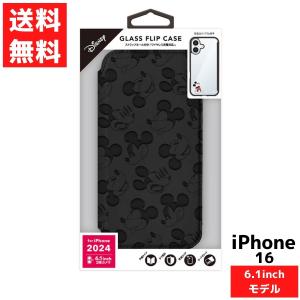 - iPhone 16用 ガラスフリップケース ミッキーマウス 手帳型 ケース アイフォン スマホ カバー