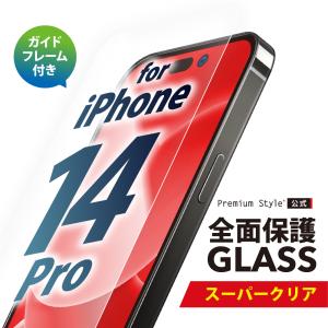 - iPhone 14 Pro ガイドフレーム付 液晶保護ガラス 全面保護 スーパークリア 光沢 画面保護 ガラスフィルム 強化ガラス 耐衝撃