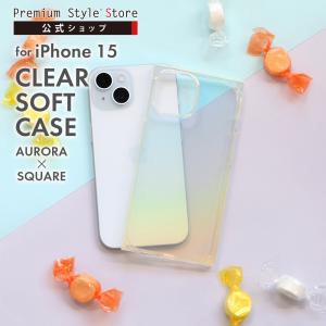 - iPhone15 ケース カバー オーロラ オーロラカラー クリア 透明 シンプル 無地 ストラップホール スクエア iPhone 15