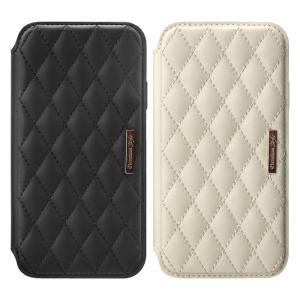 - PGA iPhone 13 mini対応 5.4inch ガラスフリップケース Premium Style キルティング調アイボリー PG-21JGF04IV