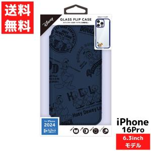 - iPhone 16 Pro用 ガラスフリップケース ドナルドダック スマホ カバー