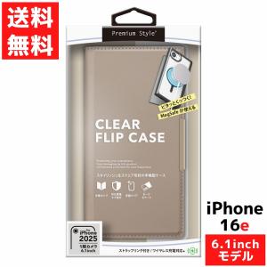 - iPhone 16e 用 クリア フリップカバー ブラック PUレザー ストラップホール付き マグネットロック アイフォン