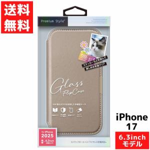 - iPhone 17用 ガラスフリップケース ベージュ PUレザー ストラップホール付き アイフォン スマホ カバー PG-25AGF02BE