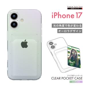 - iPhone17 用 クリアポケットケース オーロラ PG-25ACTP02AR 透明 カード 収納 交通系IC