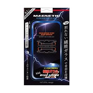 - ナチュラルデザイン iPhone 11 6.1インチ 専用背面繊維ガラス×アルミバンパーケース Blue iP19_61-MBP03 【864】 [振込不可]