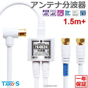 - アンテナ分波器 4K8K放送 ケーブル付き 入力 出力 ケーブル一体型 20cm×2 + 1.5M BS CS 地デジ CATV対応 4C 金メッキ ホワイト TS-ABGNL07WH TARO'S