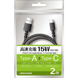 - グリーンハウス USB TypeAtoC ケーブル USB2.0 5V/3A対応 アルミ袋包装 ブラック 2.0m ブラック [2.0m] GH-UCACA20-BK