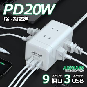 コンセントタワー型 電源タップ たこあしコンセント 携帯便利 Miniサイズ スイングプラグ ホワイト 延長コード アダプター対応 USB3ポート PD20W ポイント利用