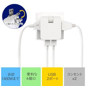 /安売り★家の良いヘルパー/KOZUMUWANN 電源タップ 3口用 可動式プラグ コンセントタップ コンパクト AC2口 USB2 1400W 2.4A たこ足 小型 防災 超薄型