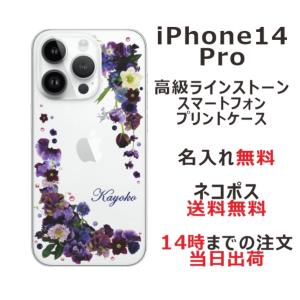 - iPhone14 Pro アイフォン14プロ らふら 名入れ スマホケース ラインストーン スマホカバー 押し花風 パープルアレンジ