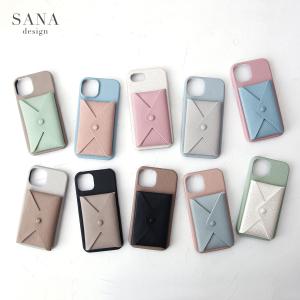 iPhone14 Pro スマホ ケース 名刺入れ アイフォン14 プロ スマホカバー 小銭入れ 背面型 大人かわいい シンプル 「 背面 バイカラー 名刺カードポケット 」