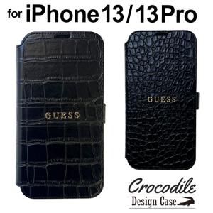 iPhone 13 ケース 手帳型 GUESS iPhone13Pro カード収納 カードポケット 手帳型ケース アイフォン プロ iPhoneケース ブラック クロコダイル 公式ライセンス品