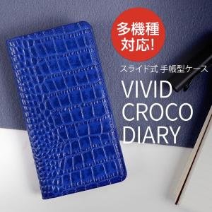 - スマホケース 本革 手帳型 スライド式 多機種対応マルチケース Gaze Vivid Croco Diary(ゲイズ ビビッドクロコダイアリー)Mサイズ Lサイズ