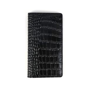 - 多機種対応スライド式 手帳型ケース Vivid Croco Diary Lサイズ ブラック 仕入先在庫品