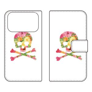 - 手帳型スマホケース Flower skull ホワイト (受注生産) SECOND SKIN iPhone 17