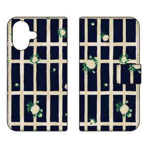 - 手帳型スマホケース SINDEE Flower Grid (ネイビー) (受注生産) SECOND SKIN iPhone 17
