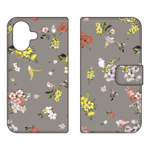 - 手帳型スマホケース SINDEE Fly Flower (グレー) (受注生産) SECOND SKIN iPhone 17