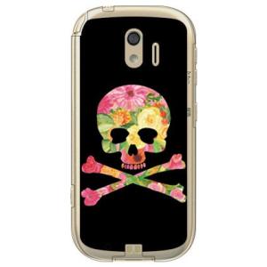 - らくらくスマートフォン me ケース F-03K Flower skull ブラック スマホケース (受注生産)